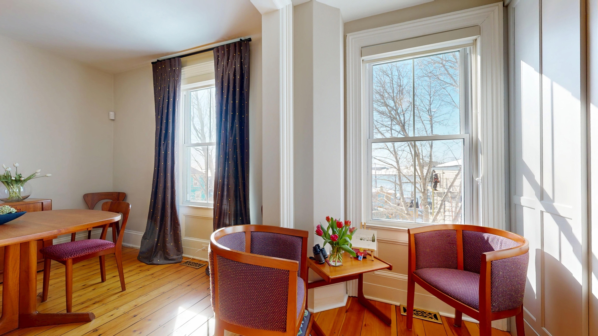Tastefully restored and updated inside and out over the past 30 years, the exterior features fine detailing around windows & doors, and ornate deck & stair railings. Inside enjoy nicely refinished woodwork and beautiful softwood floors with a rich natural patina. The main floor features a pretty front parlour at the front of the house, and at the back, a beautiful custom Kitchen that adjoins a cozy sitting area and spacious Dining Room. A handy main floor Powder Room and coat closet are cleverly tucked behind a panelled wall.