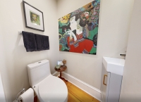 Upstairs, find 2 spacious Bedrooms and a stunning Bathroom with laundry closet. A cozy lower-level Family Room/Den with woodstove is the perfect retreat summer and winter – ideal as guest or studio space with its garden level walk-out.